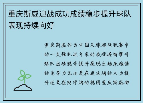 重庆斯威迎战成功成绩稳步提升球队表现持续向好