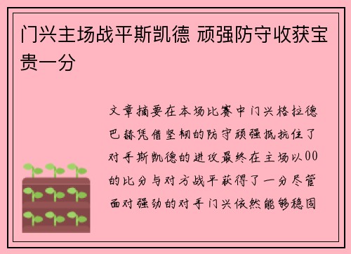 文章摘要:金年会官网在本场比赛中,门兴格拉德巴赫凭借坚韧的防守顽强抵抗住了对手斯凯德的进攻,最终在主场以0-0的比分与对方战平,获得了一分。尽管面对强劲的对手,门兴依然能...
