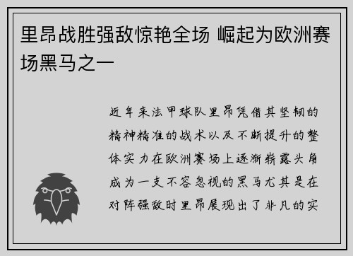 里昂战胜强敌惊艳全场 崛起为欧洲赛场黑马之一