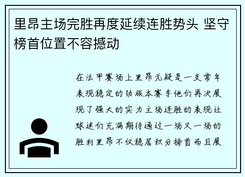 里昂主场完胜再度延续连胜势头 坚守榜首位置不容撼动