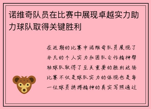 诺维奇队员在比赛中展现卓越实力助力球队取得关键胜利