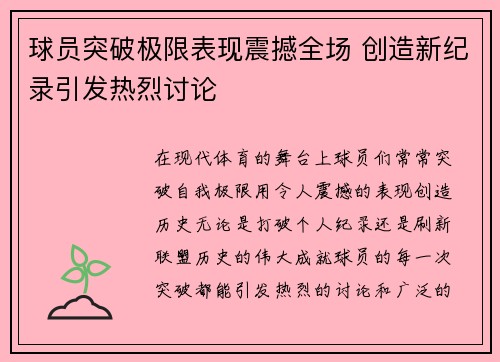 球员突破极限表现震撼全场 创造新纪录引发热烈讨论