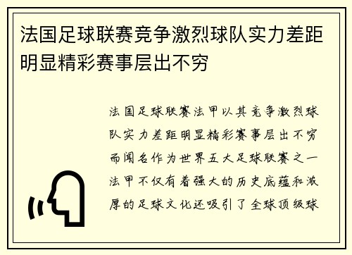 法国足球联赛竞争激烈球队实力差距明显精彩赛事层出不穷