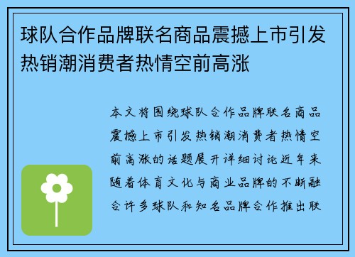 球队合作品牌联名商品震撼上市引发热销潮消费者热情空前高涨