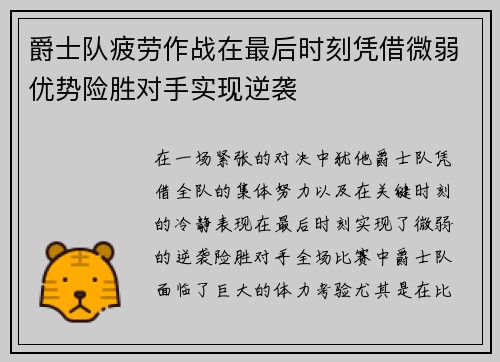爵士队疲劳作战在最后时刻凭借微弱优势险胜对手实现逆袭