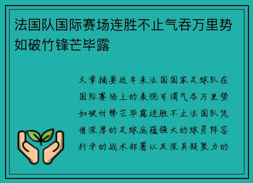 法国队国际赛场连胜不止气吞万里势如破竹锋芒毕露