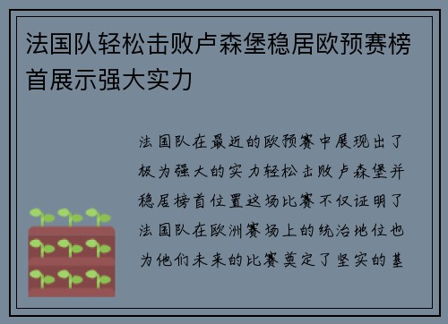 法国队轻松击败卢森堡稳居欧预赛榜首展示强大实力