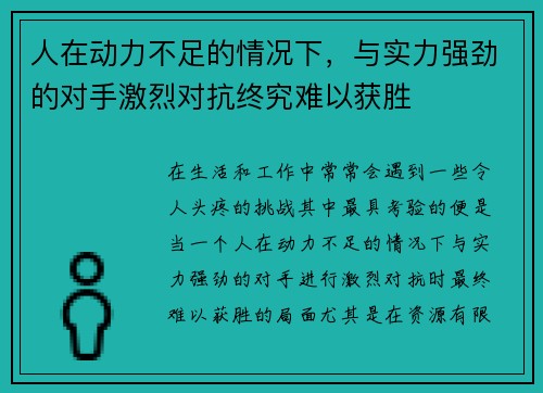 人在动力不足的情况下,与实力强劲的对手激烈对抗终究难以获胜