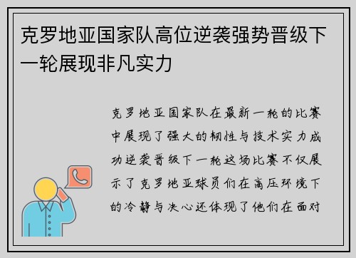 克罗地亚国家队高位逆袭强势晋级下一轮展现非凡实力