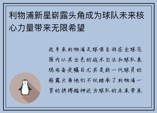 利物浦新星崭露头角成为球队未来核心力量带来无限希望