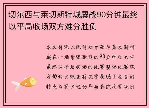 切尔西与莱切斯特城鏖战90分钟最终以平局收场双方难分胜负