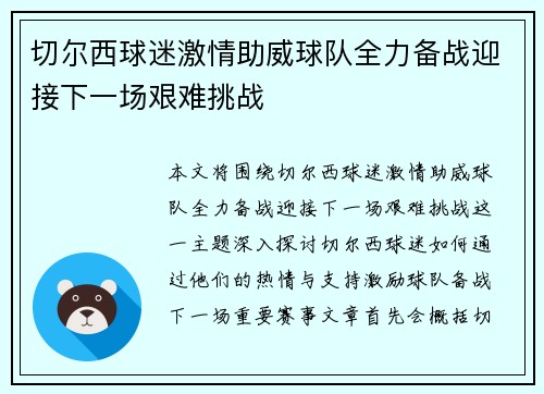 切尔西球迷激情助威球队全力备战迎接下一场艰难挑战