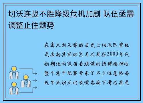 切沃连战不胜降级危机加剧 队伍亟需调整止住颓势