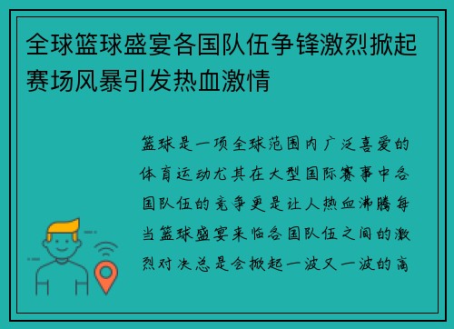 全球篮球盛宴各国队伍争锋激烈掀起赛场风暴引发热血激情