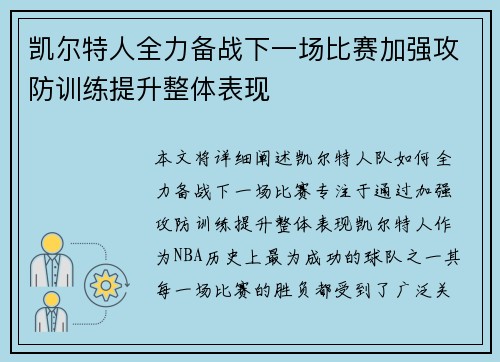 凯尔特人全力备战下一场比赛加强攻防训练提升整体表现