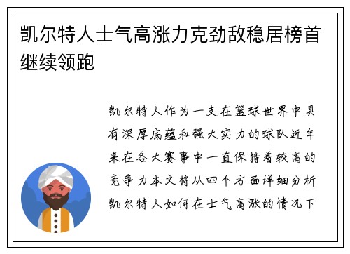 凯尔特人士气高涨力克劲敌稳居榜首继续领跑