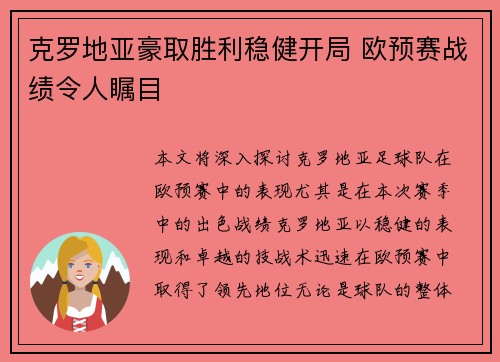 克罗地亚豪取胜利稳健开局 欧预赛战绩令人瞩目