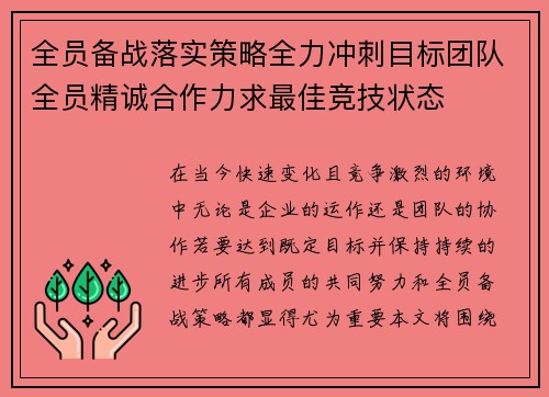 全员备战落实策略全力冲刺目标团队全员精诚合作力求最佳竞技状态