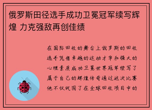 俄罗斯田径选手成功卫冕冠军续写辉煌 力克强敌再创佳绩