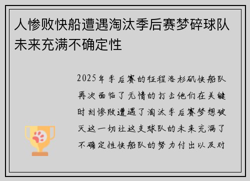 人惨败快船遭遇淘汰季后赛梦碎球队未来充满不确定性