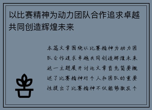 以比赛精神为动力团队合作追求卓越共同创造辉煌未来
