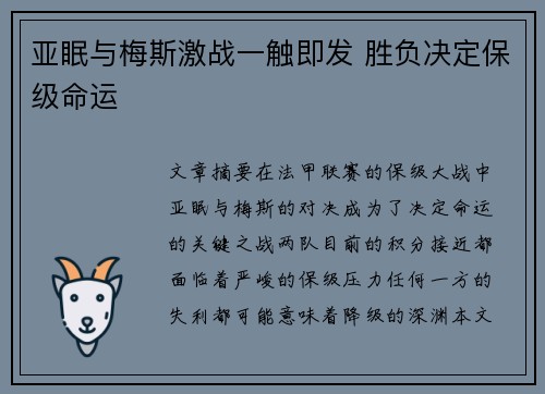 亚眠与梅斯激战一触即发 胜负决定保级命运
