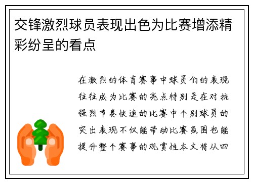 交锋激烈球员表现出色为比赛增添精彩纷呈的看点