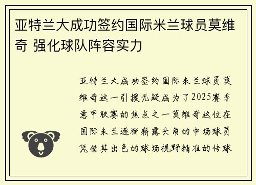 亚特兰大成功签约国际米兰球员莫维奇 强化球队阵容实力