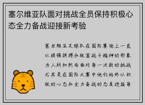 塞尔维亚队面对挑战全员保持积极心态全力备战迎接新考验