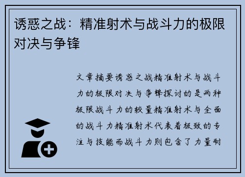 诱惑之战:精准射术与战斗力的极限对决与争锋