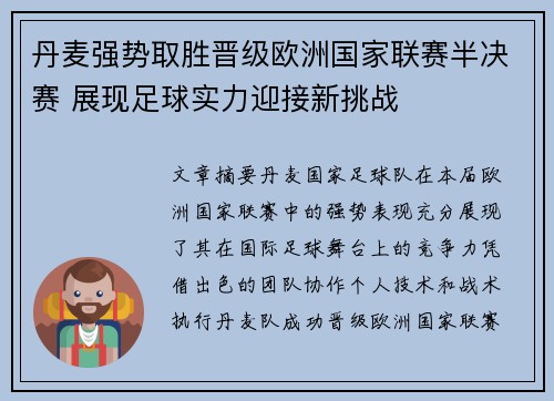 丹麦强势取胜晋级欧洲国家联赛半决赛 展现足球实力迎接新挑战