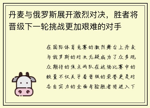 丹麦与俄罗斯展开激烈对决,胜者将晋级下一轮挑战更加艰难的对手