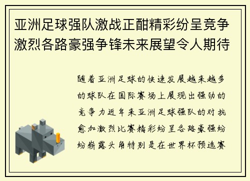 亚洲足球强队激战正酣精彩纷呈竞争激烈各路豪强争锋未来展望令人期待