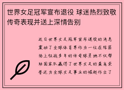 世界女足冠军宣布退役 球迷热烈致敬传奇表现并送上深情告别