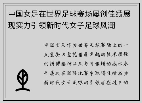 中国女足在世界足球赛场屡创佳绩展现实力引领新时代女子足球风潮
