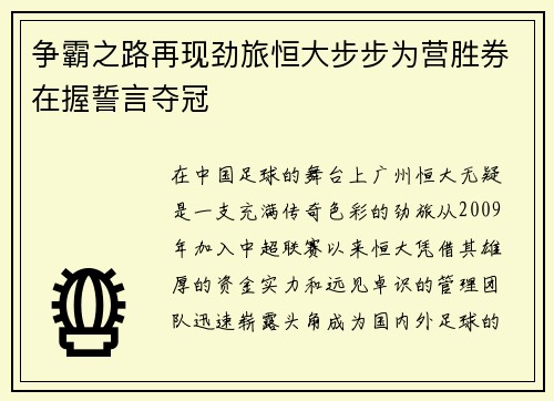 争霸之路再现劲旅恒大步步为营胜券在握誓言夺冠