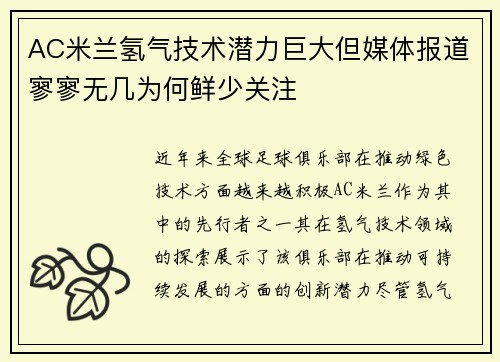 AC米兰氢气技术潜力巨大但媒体报道寥寥无几为何鲜少关注