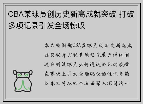 本文将围绕CBA某球员创历史新高成就突破并打破多项记录展开详细阐述,分析该球员如何通过非凡的表现,在赛场上引发全场观众的惊叹与热议。本文将从四个方面深入探讨这一事件的历史意义、球员个人努力、比赛细节及其对CBA联赛的影响。首先,我们将回顾该...