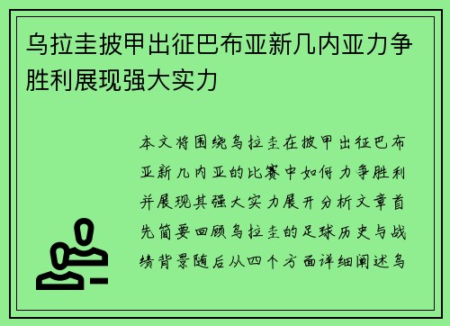 乌拉圭披甲出征巴布亚新几内亚力争胜利展现强大实力