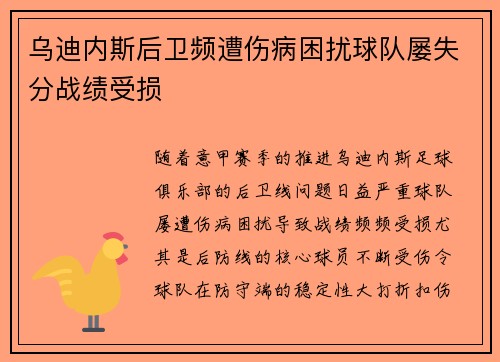 乌迪内斯后卫频遭伤病困扰球队屡失分战绩受损