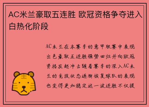 AC米兰豪取五连胜 欧冠资格争夺进入白热化阶段