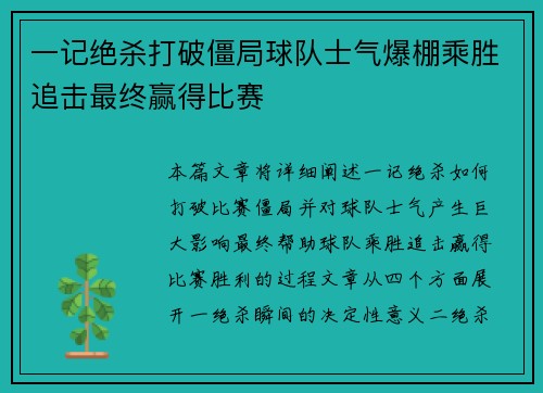 一记绝杀打破僵局球队士气爆棚乘胜追击最终赢得比赛