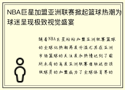 NBA巨星加盟亚洲联赛掀起篮球热潮为球迷呈现极致视觉盛宴