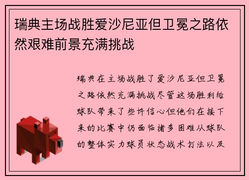 瑞典主场战胜爱沙尼亚但卫冕之路依然艰难前景充满挑战