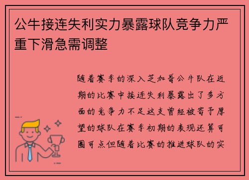 公牛接连失利实力暴露球队竞争力严重下滑急需调整