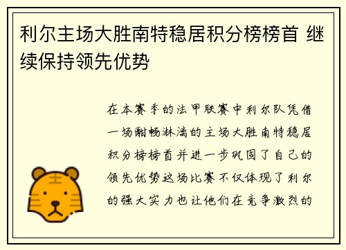 利尔主场大胜南特稳居积分榜榜首 继续保持领先优势