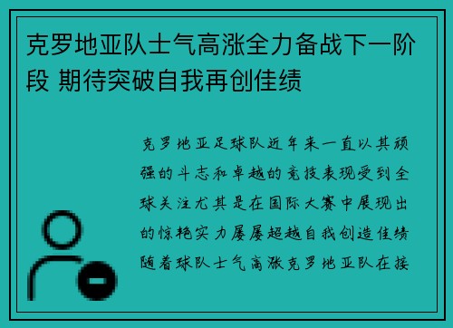 克罗地亚队士气高涨全力备战下一阶段 期待突破自我再创佳绩